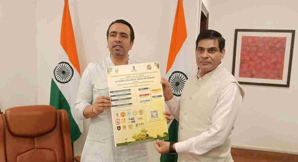 केंद्रीय मंत्री जयंत चौधरी को पर्यावरण संरक्षण गतिविधि के राष्ट्रीय संयोजक संदीप बालियान ने प्रतियोगिता की जानकारी दी